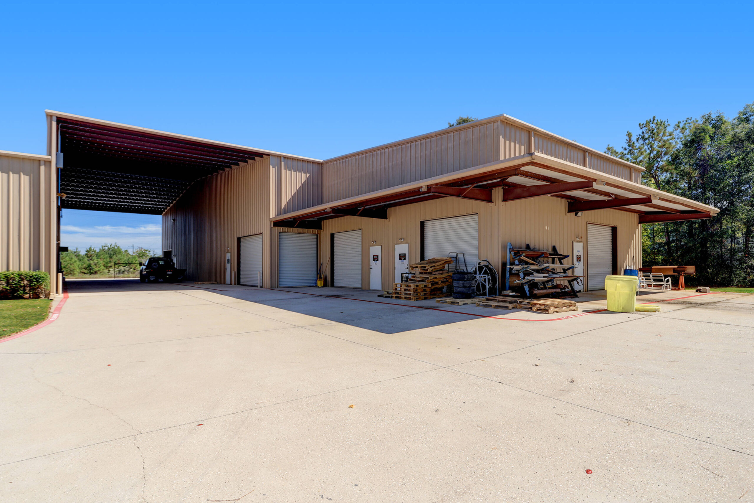 This prime facility is located in a rapidly expanding sub-market in Houston with limited industrial space. Spanning 21,000 square feet, this industrial space is conveniently situated 2.3 miles north of Grand Parkway and 3.5 miles west of Hwy 59 in the East Montgomery County Industrial Park. The building is located on a 2.5-acre corner lot with two gated drives, allowing for easy access for 18-wheelers and smooth traffic flow and parking.